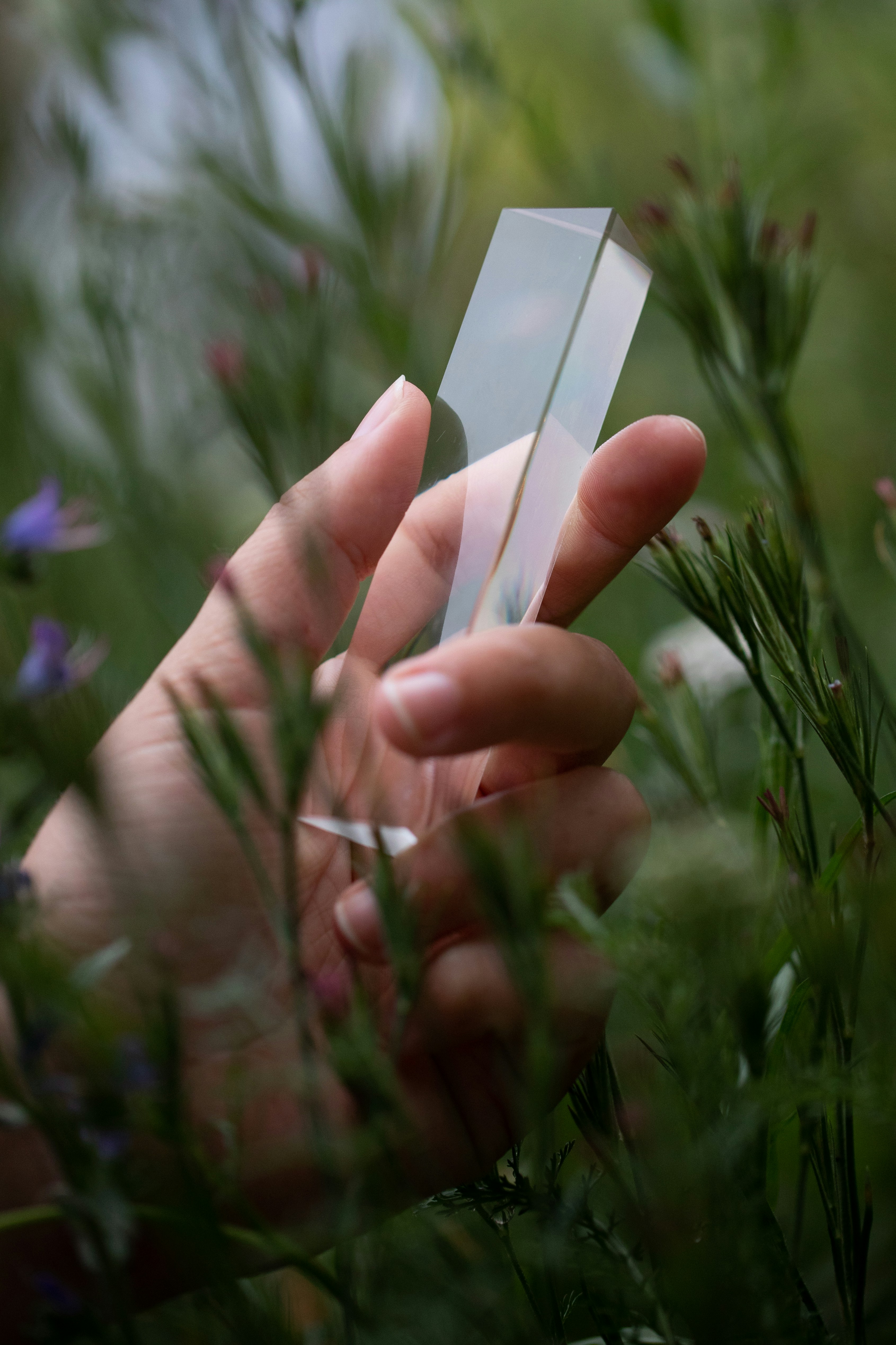 | images from unsplash/pexels: mountain / loom / piece of glass / bee |